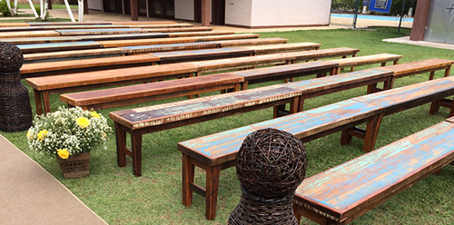 Na Locaki - , oferecemos bancos especialmente selecionados para cerimônias ao ar livre e interiores, com design rustico que se adapta a qualquer estilo – rustico elegante.